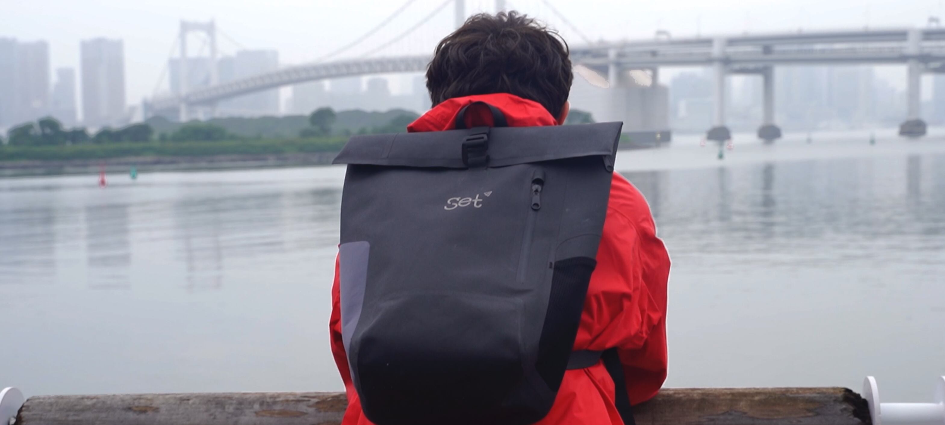 Waterproof bag "Get Set" は、突然の大雨にも真夏の台風にもびくともしないIPX6の防水基準をクリアしています。さらには背負っていることを忘れるくらいのたった710gという超軽量。